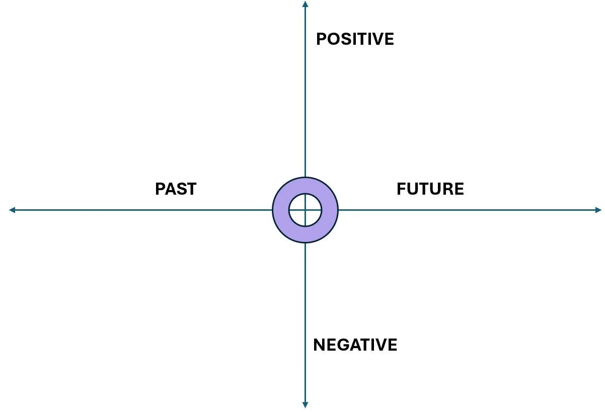 Along the x-axis is time. If you move to the right, it means your mind is in the future. To the left, your mind is in the past. Along the y-axis is mood. If you move up, it means your mind is only on the positive. Move down, your mind is on the negative. During the game, I want your mind centered. Do not linger on past mistakes nor anticipate future milestones. Keep your perspective on the center, right now.